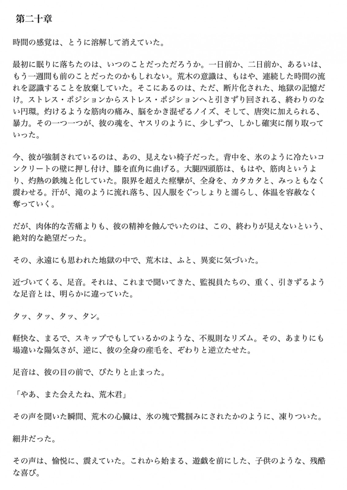 エリート特殊部隊員になるための最終関門。それは、心身の全てを捧げる覚悟を問う、地獄の儀式だった。候補生・荒木は、人格を否定され、仲間との絆を試される過酷な尋問に耐え抜く。彼の脳裏に焼き付いて離れないのは、かつて自分を屈服させた男たちの記憶と、絶対的な強者への渇望。極限の苦痛の中で、彼は己の本当の欲望と向き合うことになる。そして、死の淵で彼を待っていた運命の再会。憧れの教官・木村との邂逅は、荒木の魂を根底から揺さぶる。すべてを捧げた彼を待ち受ける、非情なる審判の時。果たして、選抜試験の結果は……。