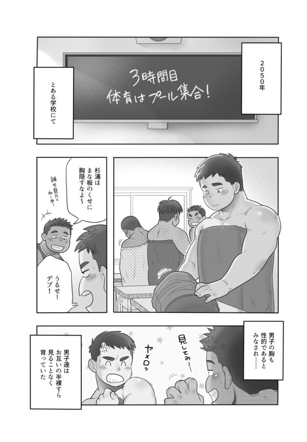 とある学校でのプールの授業では男子達が胸を隠しながら水着に着替えているが、