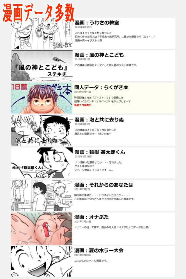 デブ体型な男の子を中心に年齢は様々なごった煮イラスト集で漫画データも多数掲載しています。