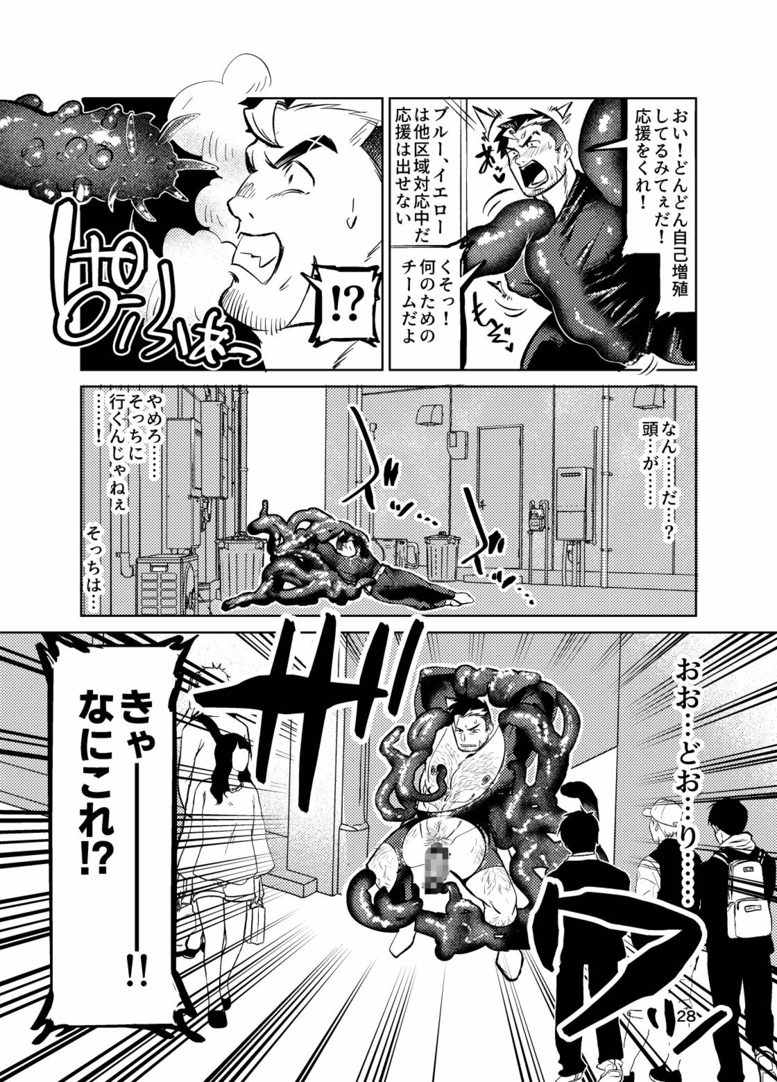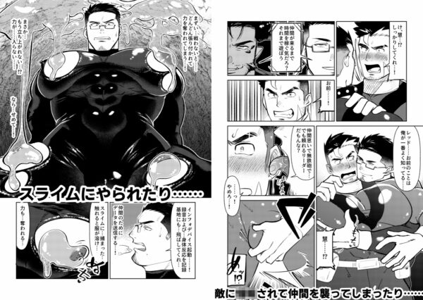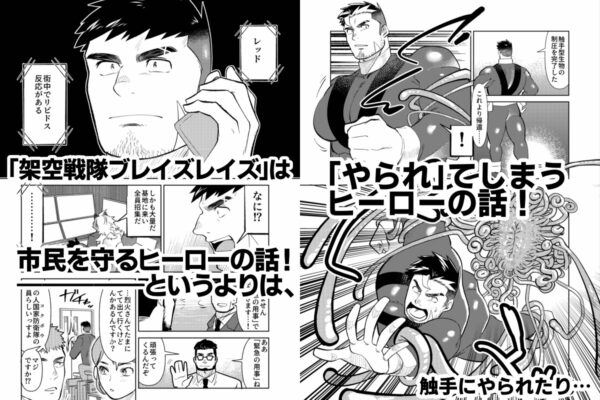 架空の戦隊ヒーローのR18「やられ」をテーマにしたマンガです。1巻目は「熱血だけど、市民をかばってやられがちなレッド」と「冷静沈着だけど、オナホが大好きなブルー」の2人が「やられ」ます!