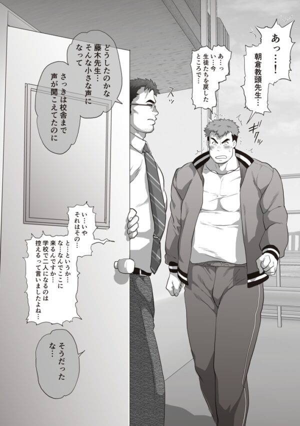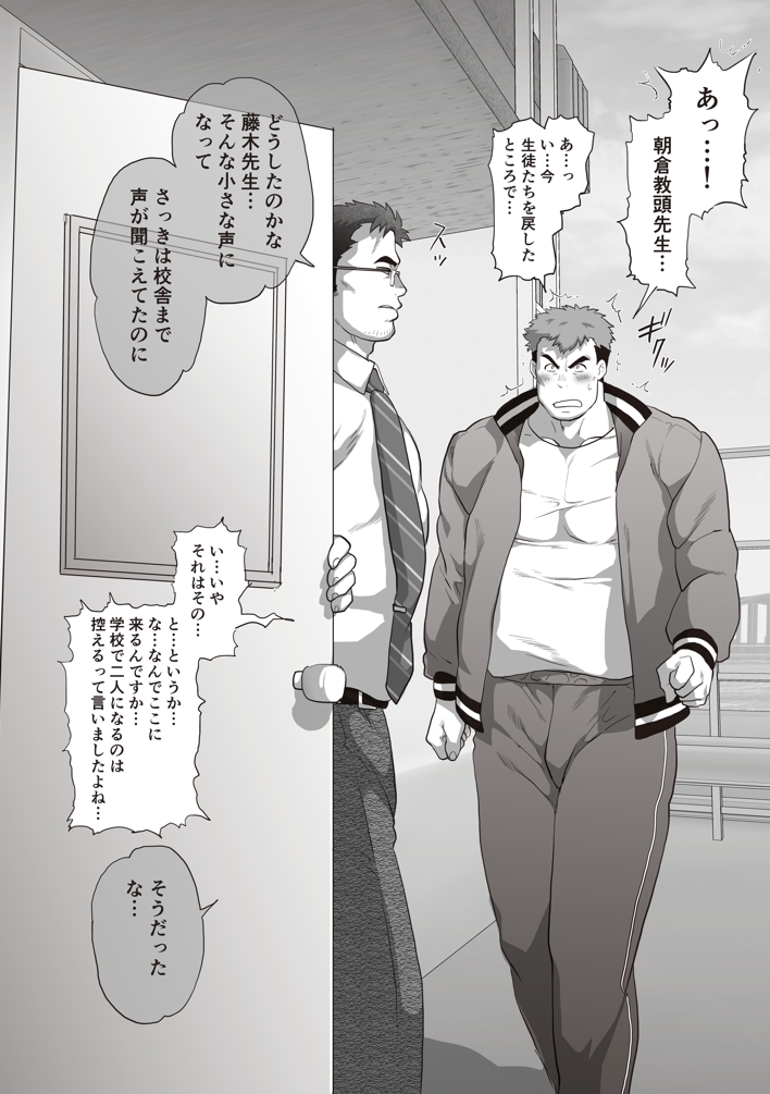 基本的に体育教師藤木が教頭から攻められる内容で、純愛ものです。