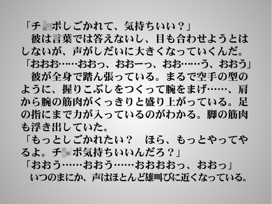 30代リーマンは、スーツを脱げば空手で鍛えたバキバキの身体。彼が好きなのは「一方的な手コキ」。おっ勃てたモノをシゴかれ、シゴかれ、なんども昇りつめながら寸止めを繰り返されるうち、空手男は快感に狂っていき……