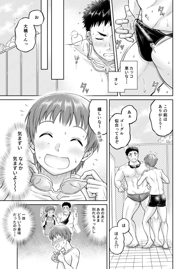 先日の外出以来お互いを意識してしまう大橋と井上。今までのように過ごしながらも心はドキドキソワソワ。そんなある日、井上の水泳の上達具合を見た先生から放課後の特訓の終了を告げられる。一緒に過ごす時間が無くなることを危惧する2人。困惑の中、井上はある決意をする…!